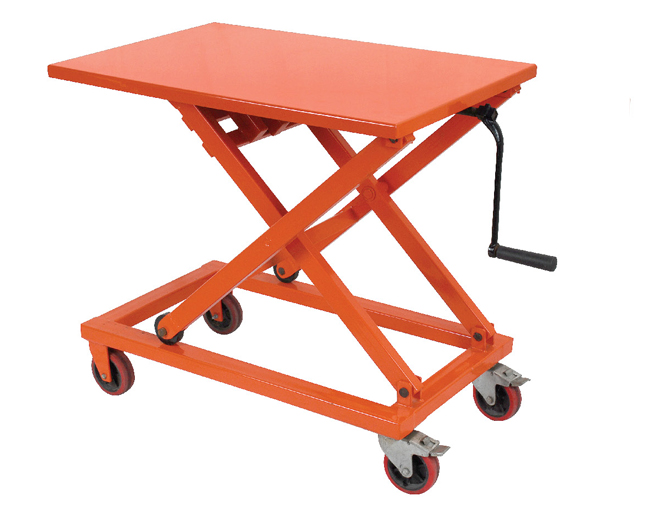 平臺(tái)處于上升的開始位置時(shí),操作人員不能離開。手搖式機(jī)械平臺(tái)車使用分支式升降平臺(tái)